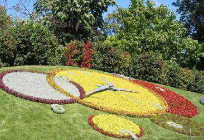 Интересно, что самые первые цветочные часы появились в городе Кальвина еще в 1903 году. А часы в Английском саду существуют с 1955 года. Это одновременно произведение технического, дизайнерского и садоводческого искусства. Циферблат их состоит из восьми сфер, или кругов, цвет которых меняется в зависимости от времен года. Он выполнен из тщательно подобранных цветочных клумб и клумбочек, на которых растет около 6500 растений - за ними ухаживают заботливые руки сотрудников городского департамента зеленых насаждений - сажают, поливают, пропалывают. Стрелки же на пятиметровом циферблате передвигаются с помощью электронного механизма, который спрятан под землей, под клумбой (кстати, секундная стрелка – самая длинная в мире, она равняется 2,5 метрам).