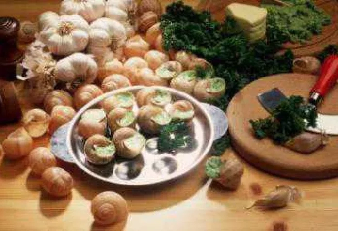 Мясо улиток нарезать и нафаршировать им раковины, накрыв доброй порцией приготовленного масла. Выложить нафаршированные раковинки маслом вверх на блюдо и перед подачей на стол разогреть их в горячей духовке 7-8 минут.
