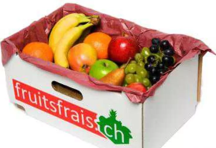 Фирма Fruitfrais предлагает свои услуги непосредственно дирекции предприятий. Она доставляет фрукты на место, уже расфасованные по 5 килограммов, не менее четырех видов, всего 25-30 фруктов. Яблоки выращены в кантоне Во, да и другие плоды, по-возможности, стараются выбирать из локальной продукции. Стоимость такой фруктово-продуктовой корзинки - 34 франка. Кто стал клиентом за шесть недель после начала работы? Банки, страховые кампании и даже посольство. Тем, кто заключает абонемент, каждая восьмая корзинка доставляется бесплатно. Информация на сайте: http://fruitsfrais.ch