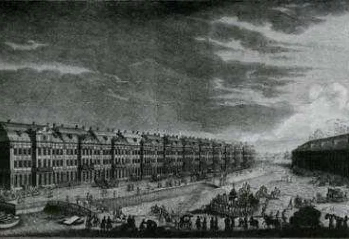 Проспект Государственных Коллегий, М.И. Махаев и Е.Т. Внуков, гравюра 1753 г. [Здесь и далее - иллюстрации из книги Bâtir pour les tsars, Nicola Navone]