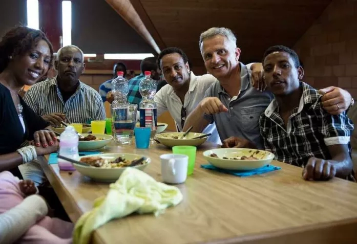 Члены правительства вместе с обитателями центра отправились на обед в общую столовую. Вокруг каждого министра собралась небольшая группа беженцев, желавших обсудить ситуацию в стране. Советники легко шли на контакт и были готовы общаться. Наибольшую активность проявили сама Соммаруга, министр иностранных дел Дидье Буркхальтер и министр обороны Ули Маурер. Напомним, что последний представляет правую Народную партию Швейцарии, усилиями которой в стране был принят целый ряд законопроектов, направленных против приема иммигрантов и беженцев. Тем не менее, Маурер был дружелюбен и охотно знакомился с обитателями центра. Правила приличия не позволяли ему поступить иначе, ведь получалось, что именно члены правительства были в гостях у беженцев.