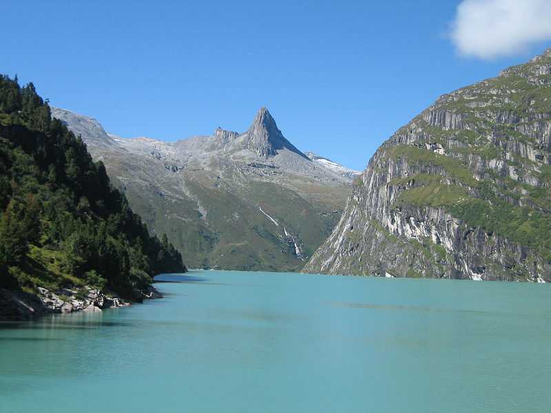 Искусственное озеро в поселке Церврейла, коммуна Вальс, кантон Граубюнден – экологически чистое и эффективное хранилище электроэнергии. Чтобы получить ток, достаточно открыть клапаны плотины (swisstherme.ch)