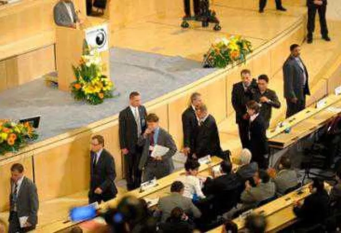 В этот момент послы всех 23 стран-членов Евросоюза, присутствовавшие на Конференции, дружно поднялись и демонстративно покинули зал. Чуть позже представитель Чехии, возглавляющей в настоящее время ЕС, объявил, что окончательно покидает Конференцию.