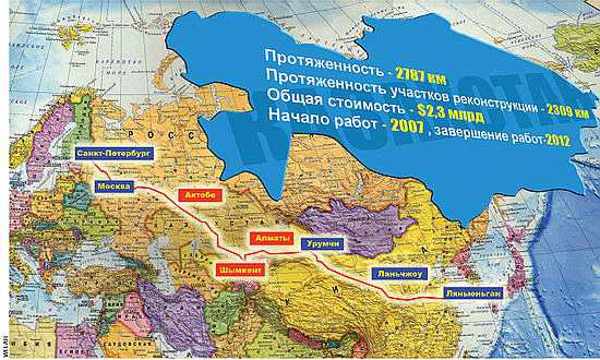 Трасса «Западная Европа – Западный Китай» - без сомнения, наиболее масштабный проект международной автомобильной магистрали современности. В глобальном смысле она соединит Париж и Берлин с Санкт-Петербургом, Москвой, проходя затем по коридору Нижний Новгород - Казань - Оренбург - Актобе - Кызылорда - Шымкент - Тараз - Кордай - Алматы - Хоргос - Урумчи - Ланьчжоу - Чжэнчжоу - Ляньюньган.