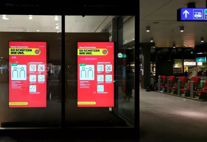 Афиши с правилами гигиены на бернском вокзале © Nashagazeta.ch