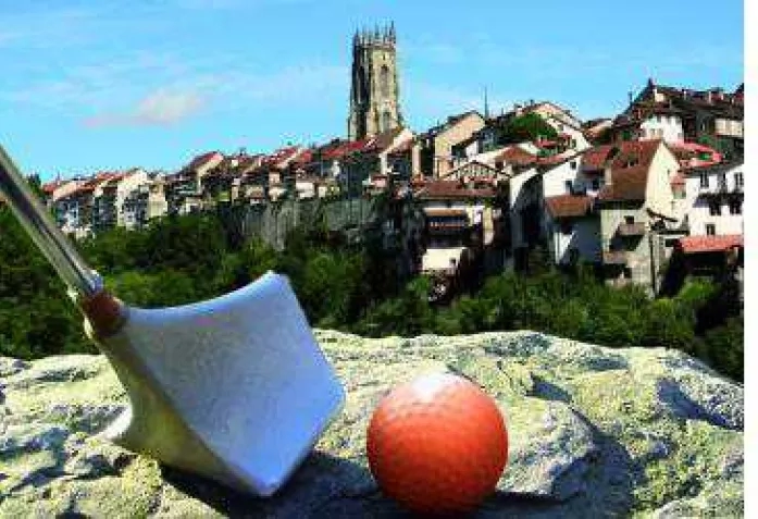 Что же такое городской гольф? Это поле из 18 лунок, тщательно сооруженных на всей территории Старого Города Фрибурга, род игры в прятки. Непросто найти место для броска между колясок, в которых прогуливают малышей на площади Питон, и любителями позагорать на солнышке на мосту Милье. К счастью, красная стрелка, воткнутая в искусственный газон, обозначает каждую лунку. В центр ее и нужно забросить мяч.