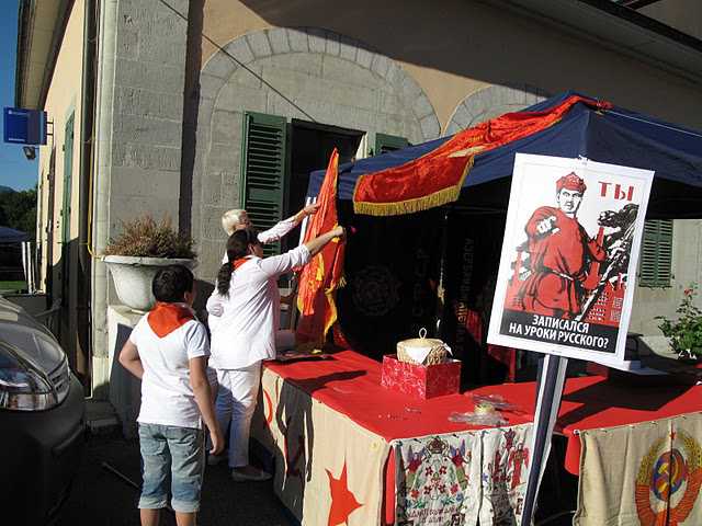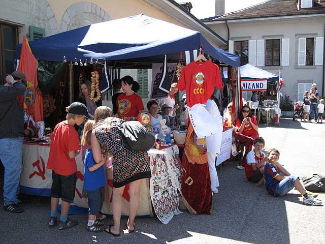 В субботу 28 мая в Международной школе Женевы прошел традиционный праздник Кермесс, на котором, как мы уже рассказывали, был и русский стенд. Вернее, его тоже можно назвать медлународным, ведь организовывали его представители нескольких государств - России, Украины, Казахстана, Латвии и Израиля. Стенд пользовался большой популярностью, водку и семечки распродали все! На исходе дня в школьный фонд было передано 2310 франков. Надеемся, что они пойдут на правое дело - организацию уроков русского языка в рамках школьной программы. Напоминаем: чтобы фотка стала побольше, надо на нее кликнуть (Фото Nasha Gazeta.ch)