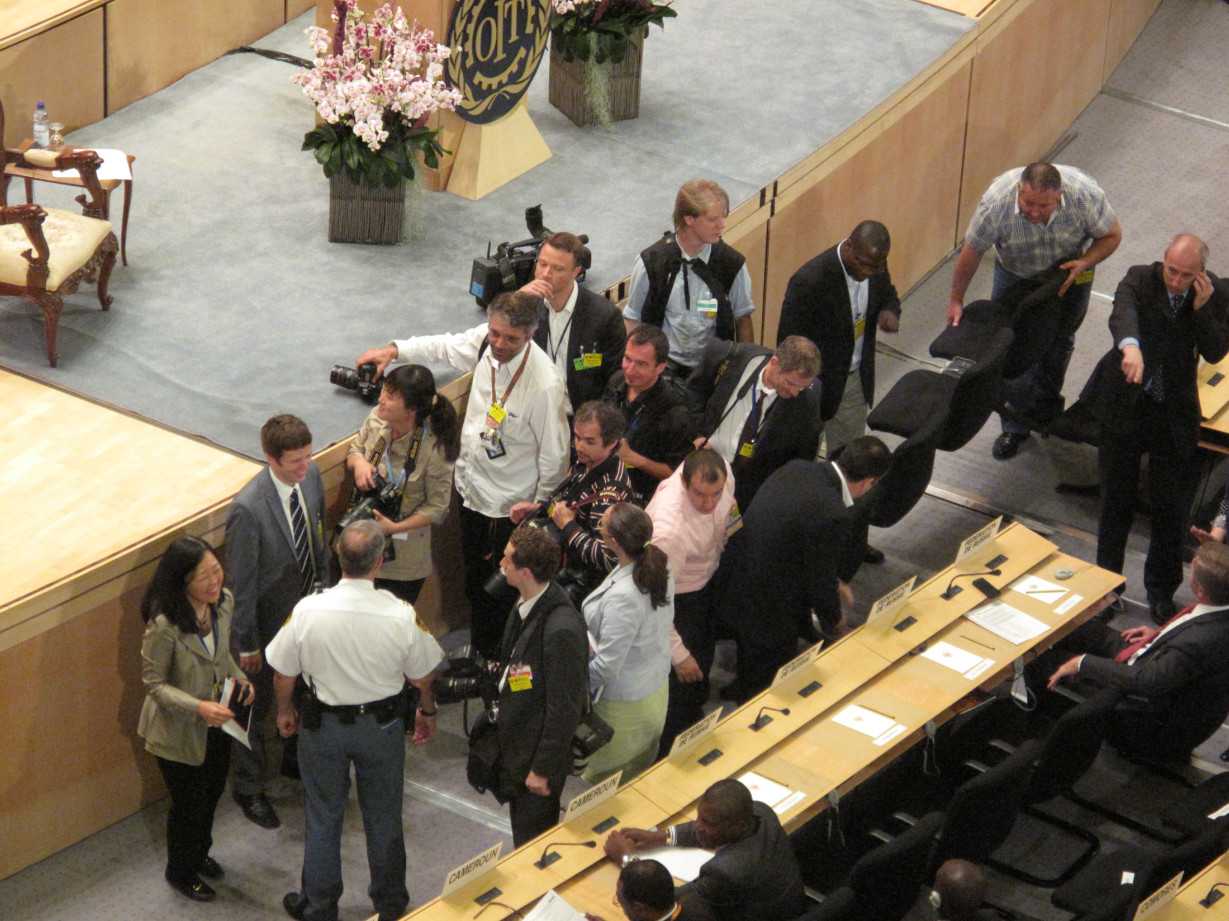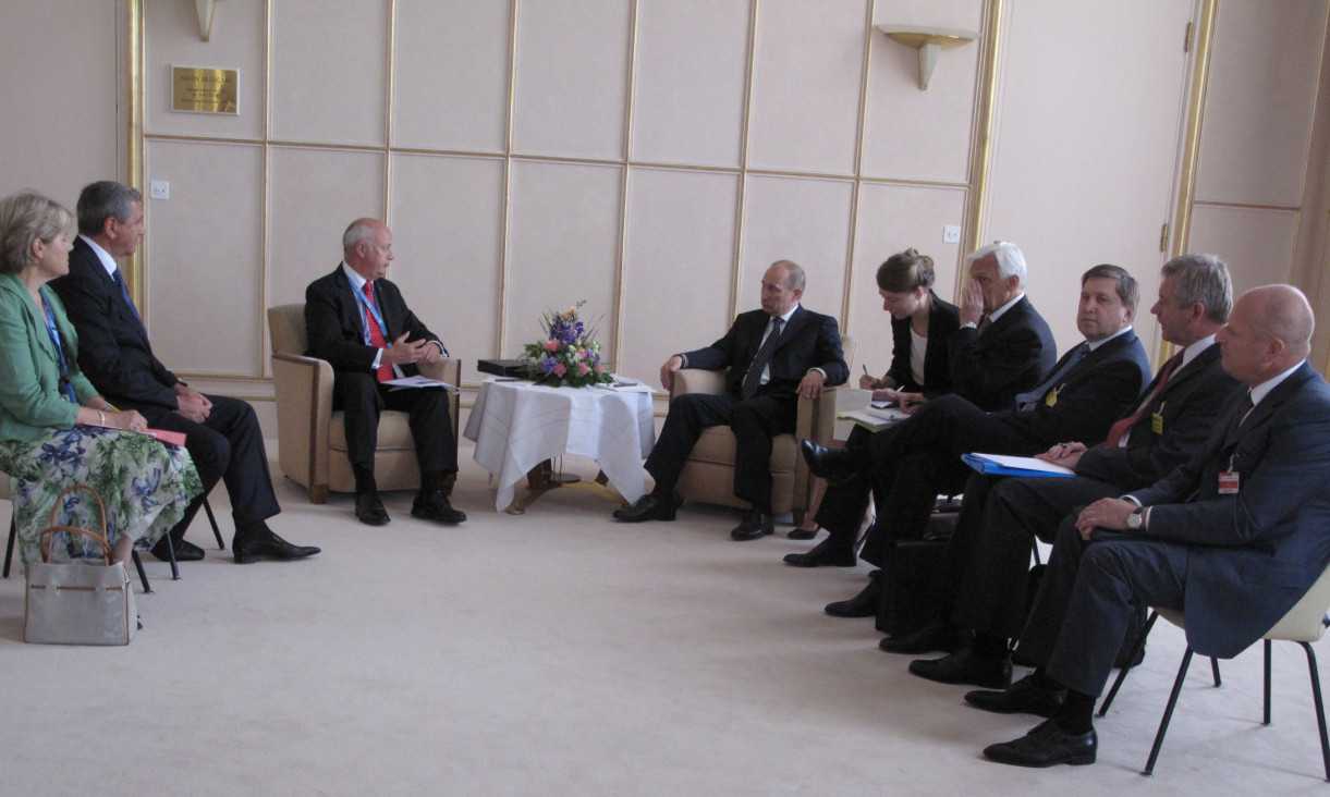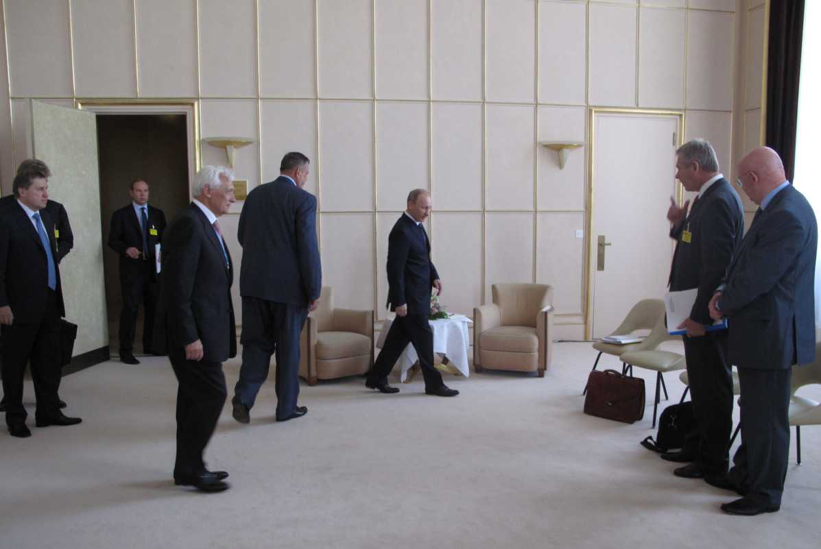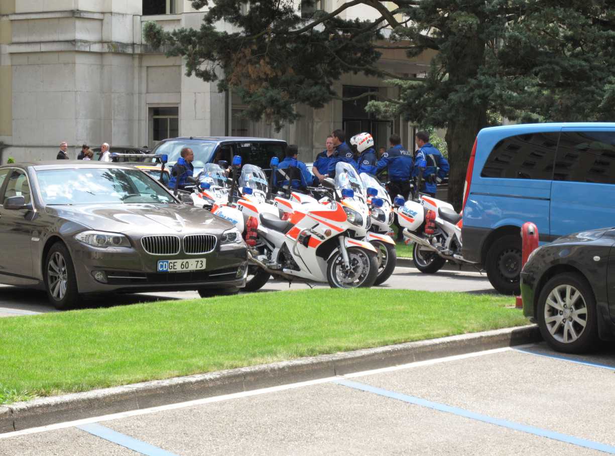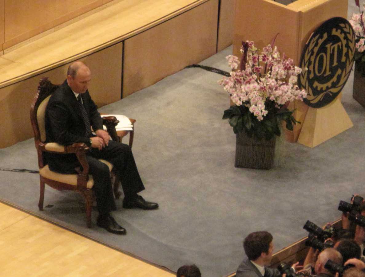 15 июня премьер-министр Российской Федерации Владимир Путин побывал в Женеве. Он выступил на 100-ой сессии Международной Организации Труда, а затем провел ряд двусторонних встреч: с генеральным директором Европейского Отделения ООН в Женеве К.-Ж .Токаевым, генеральным директором МОТ Х. Сомавия, исполнительным секретарем Европейской Экономической Комиссии ООН Я. Кубишем, верховным комиссаром ООН по делам беженцев А. Гутерришем, генеральным директором Международного Союза Электросвязи Х. Туре, президентом Международного Олимпийского Комитета Ж. Рогге, и наконец, с президентом Швейцарии Мишлин Кальми-Ре.
