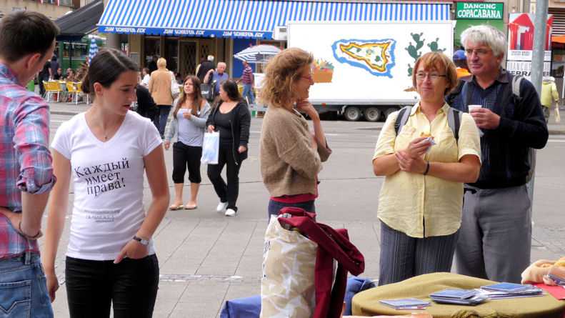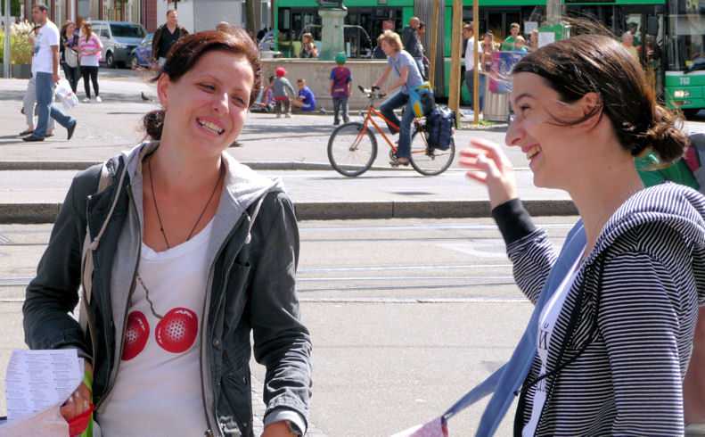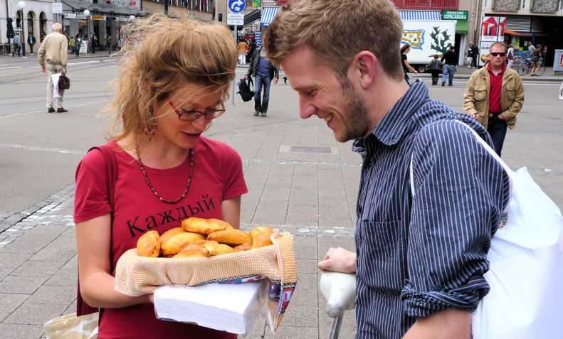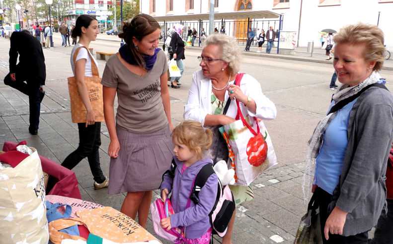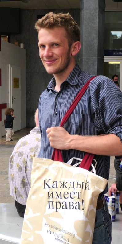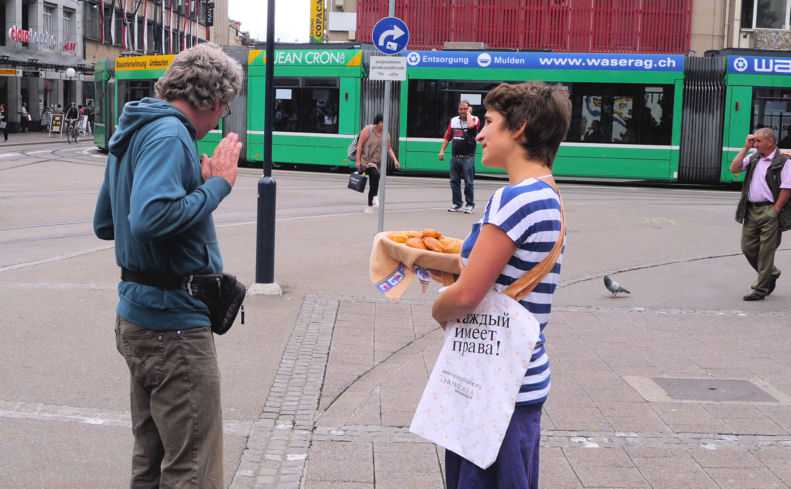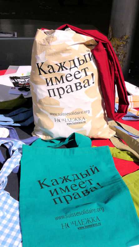 На прошлой неделе мы рассказали читателям об акции, проведенной швейцарской ассоциацией "Ночлежка" в пользу бездомных Санкт-Петербурга в субботу, 27 августа, на базельской площади Клара-платц. Стенд посетил один из патронов ассоциации, член швейцарского парламента Беат Янс. Организовавшим акцию студентам удалось продать маек и сумок на сумму 545 франков, что позволило не только покрыть расходы, но и выручить 260 франков чистого дохода. Мало? А вы что-нибудь купили? Если нет, то предлагаем посмотреть, как это было, в надежде, что в будущем акции  "Ночлежки" будут получать более широкую поддержку. Напоминаем, чтобы увеличить фото достаточно на него нажать. (Photos - NZZ)