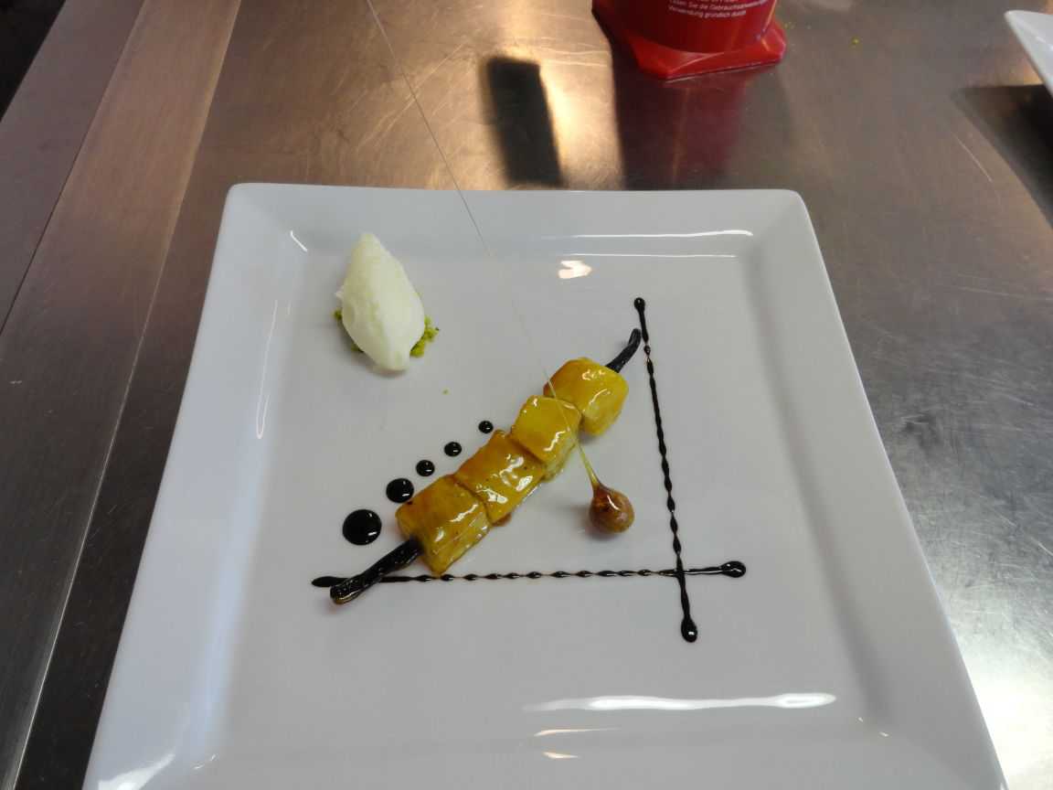 Павел Ремеслов: Тема - это набор продуктов, из которых нужно приготовить три блюда. Мне нужно было предложить закуску из телячьих желез с яблоками и швейцарским виски, в качестве основного блюда – интерпретировать рыбу тюрбо в сочетании с орехами и эндивием, с двумя свободными гарнирами и соусом. Заданием-десертом был французский шоколад с грушами. Так вот забавно, на первый взгляд: виски - швейцарский, а шоколад – французский, но виски в Швейцарии действительно есть, очень хороший и дорогой. На разработку досье оставалось не так много времени: ведь каждое блюдо нужно придумать, приготовить, сфотографировать. Я попросился выходить на работу во время выходных, чтобы работать на кухне, покупал дорогую рыбу и ставил над ней эксперименты. Мои шефы в Lausanne Palace очень помогли мне в тот момент и поддержали. Но когда я получил положительный ответ для участия в конкурсе, мне пришлось их покинуть, и на меня даже немного обиделись.