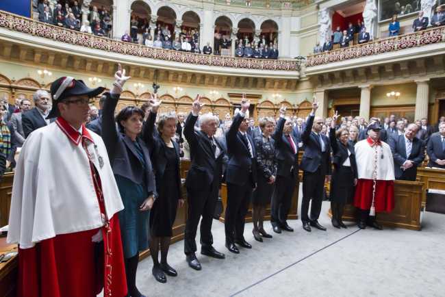 Федеральный Совет в новом составе приносит присягу (Keystone)