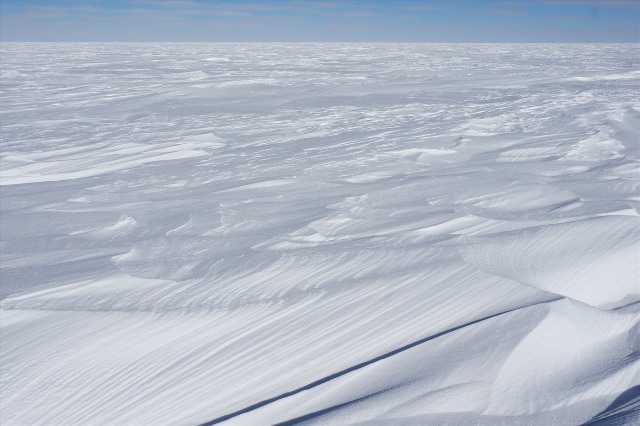 Ажурное кружево заструг – снежных гряд, наметенных ветром на поверхности льда