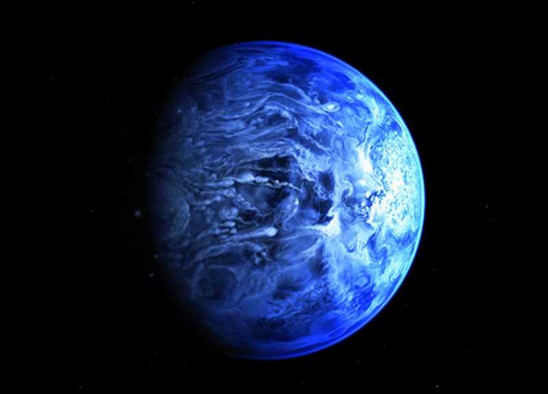Планета HD 189733 b, обращаясь вокруг своей звезды (оранжевого карлика HD 189733), «ведет себя» очень похвально с точки зрения ученых, глядящих на нее с Земли в телескопы, так как раз в два дня она проходит прямо перед своим солнцем. Именно в этот короткий период, длящийся менее двух часов, свечение звезды немного меняется, что позволяет астрономам «отделить» световой сигнал планеты от мощного сигнала светила. Атмосфера газового гиганта имеет голубой цвет (из-за присутствующих в ней частичек силикатов, «разбрасывающих» голубое свечение), что интригует и одновременно вызывает некоторое разочарование, так как на этом сходство HD 189733 b с Землей заканчивается, отмечается на сайте НАСА.