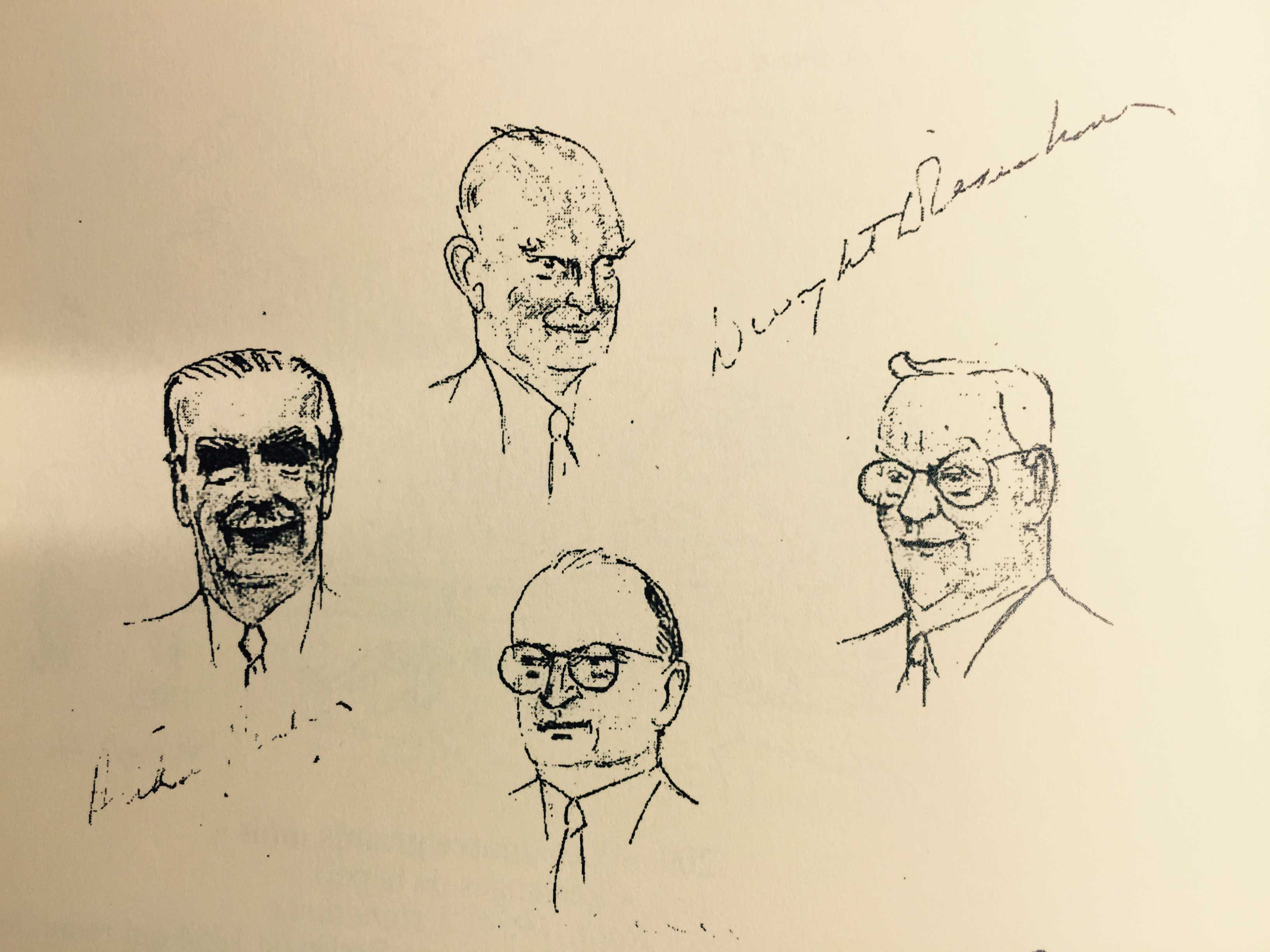 Такими запечатлел глав четырех делегаций женевский карикатурист Рот, 1955 год