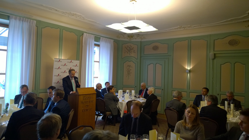 Уже десерт, но вопросы не «остывают». Теперь уже из зала. В данном случае: из-за обеденных столов, за которыми собрались члены Centre russe и гости заседания: послы, аккредитованные при международных организациях в Женеве, старшие дипломаты, женевские банкиры, бизнесмены, юристы, журналисты, эксперты в области безопасности из Швейцарии, России, США, КНР, Японии, Кыргызстана, Белоруссии, Италии, Финляндии, Молдавии, отделения ООН в Женеве, штаб-квартиры НАТО... Тут и члены Centre russe (некоторые уже с десятилетним стажем), и приглашенные гости. Глава делегации Лиги арабских государств при женевском отделении ООН посол Самех Абул-Энин и финансист Петер Шмидт, директор института ООН по разоружению (ЮНИДИР) Ярмо Сарева и управляющий директор Banque Cramer Генри Банделье, адвокат Давид Провидоли и посол Черногории Милорад Щепанович, - всех их сегодня объединил интерес к тому, как поведет себя треугольник «Россия – США – Европа» в 2017 году и, конечно, как поведет себя Россия в этом треугольнике. Но вопросы из зала, а затем и в кулуарах не ограничиваются этим «треугольником»: они - о Сирии, об Украине, о контроле над обычными вооружениями в Европе, о кибербезопасности, о санкциях и контрсанкциях и о том, когда их отменят, - в общем, обо всем том, к чему так или иначе причастна Россия. И как субъект, и как объект. И как «экспортер глобальной безопасности», - по крайней мере, так ее характеризует в своих комментариях Владимир Орлов.