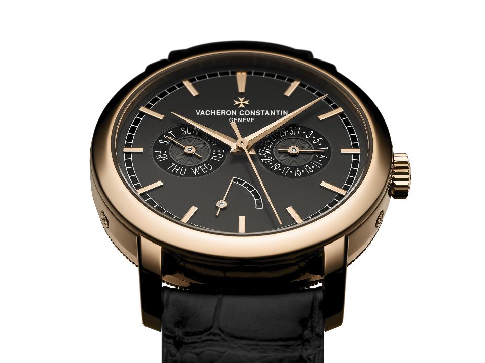 Коллекция Traditionnelle сочетает в себе как изысканные изделия, так и простые, но элегантные модели. Новая коллекция часов, заключенных в корпусы из розового золота 18 карат (номер сплава — 5N) с циферблатами грифельного цвета является воплощением современности, хотя некоторые часы дополнены классическими функциями: часовой и минутный счетчики в часах Traditionnelle с ультратонким калибром и автоматическим подзаводом; центральная секундная стрелка, индикаторы дня недели, даты и запаса хода в часах Traditionnelle с индикацией дня недели, даты и запаса хода; малый секундный счетчик в положении «9 часов» и индикатор даты в часах Traditionnelle с простым циферблатом. Сдержанные, но при этом утонченные модели оснащены автоматическим калибром с ручным подзаводом, который можно рассмотреть сквозь заднюю крышку корпуса из сапфирового стекла. Одна из моделей снабжена калибром 1120. Это ультратонкий калибр состоит из 144 деталей. Он был спроектирован и собран на мануфактуре Vacheron Constantin и обладает высотой всего 2,45 мм. Новые интерпретации дополнены итоговой версией калибра с ручным подзаводом, минутным и часовым счетчиками, а также малым секундным счетчиком в положении «6 часов», запас хода которого составляет три дня.