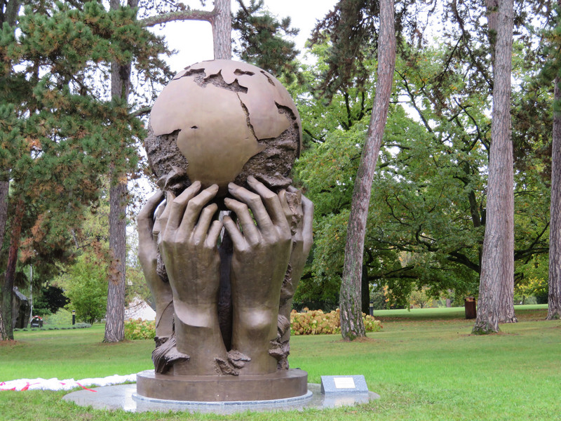 Господин Гасанов в свою очередь поблагодарил М. Моллера и его коллег за эффективное сотрудничество и, в частности, за помощь в организации торжественной церемонии. Предваряя символический момент перерезания ленточки, он сказал, что привезенная в Женеву из Баку скульптура – земной шар, поддерживаемый поднятыми вверх, словно обращенными в будущее, руками – призвана отразить чаяния всего человечества, связанные с миром, безопасностью, развитием и правами человека. Реализация этих чаяний – важнейшая задача Организации Объединенных Наций.