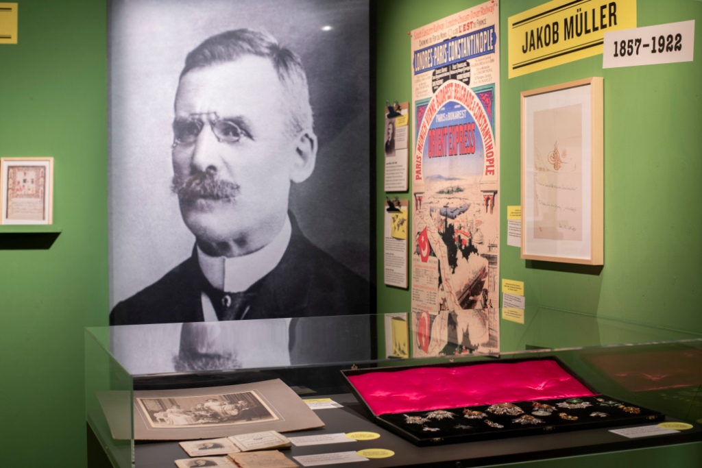 Истории, многие из которых относятся к категории «нарочно не придумаешь», произошли в XIX-XX веках. Вещи, фотографии и фильмы наполнены чувствами, надеждами и устремлениями людей, которые осваивались в чужих краях. Интересно сложилась жизнь Якова Мюллера из Люцерна, который в 1877 году двадцатилетним юношей приехал в Стамбул. Со временем он дослужился до должности директора компании «Румелийская железная дорога», обслуживавшей магистраль в Румелии (Европейская часть Османской империи), затем Европейской Турции, с 1870 по 1937 год. Примечательно, что между 1889 и 1937 годами железная дорога принимала всемирно известный поезд Восточный экспресс, увековеченный в романе Агаты Кристи.