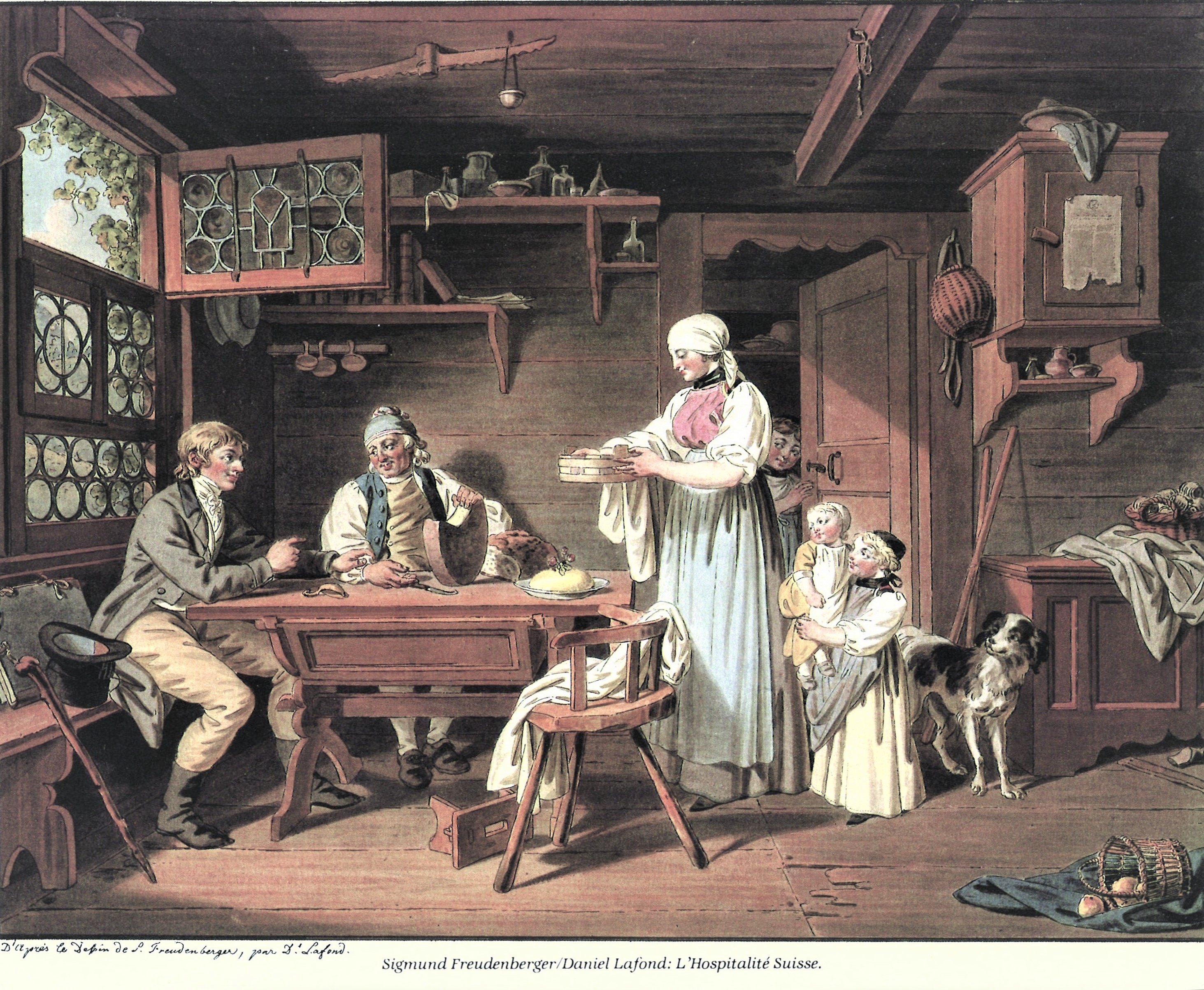 Фрейденбергер, Зигмунд. Швейцарское гостеприимство. 1880-е гг. Гравюра, раскрашенная акварелью © DR