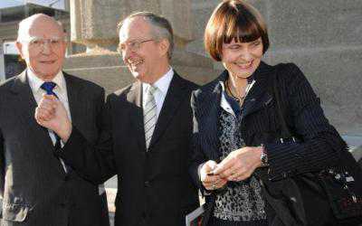 На фото: создатель Prix de Lausanne Филипп Брауншвайг и его президент Шарль Гебарт приветствуют Мишлин Кальми-Ре, тогда президента Швейцарии, приехавшую на финал конкурса в 2007 году. (АТС)