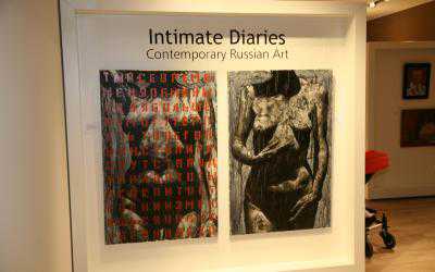 Итак, 15 художников – самый широкий спектр поисков и находок, интересный срез русской художественной современности. На выставке «Интимные дневники» коллажи и вариации на тему «Чёрного Квадрата» Игоря Макаревича соседствуют с неоакадемическим автопортретом Татьяны Фёдоровой, виртуозные офорты Олега Яхнина, перенаселённые химерами и масками, - с портретами питерских домов Александра Дашевского.