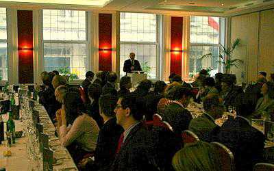Интерес к России со стороны швейцарских бизнесменов остается стабильно высоким, об этом можно было судить по публике в зале – представители крупнейших банков, ведущих страховых, промышленных и строительных компаний.