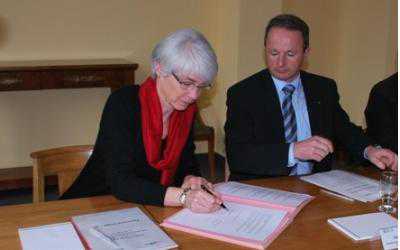 Ректор Мартин Райе и президент BCN Жан-Ноэль Дюк подписывают контракт [www.rtn.ch]