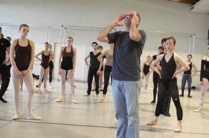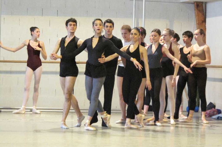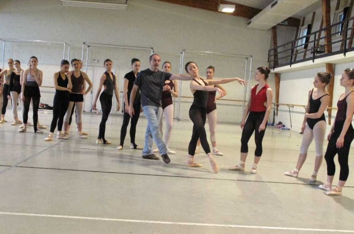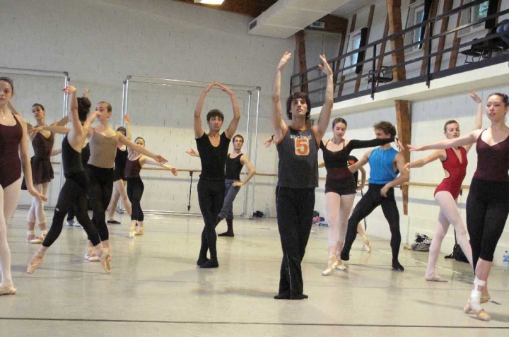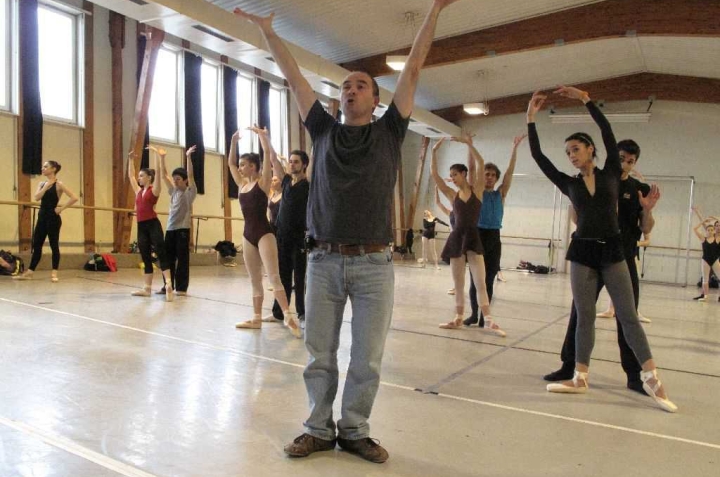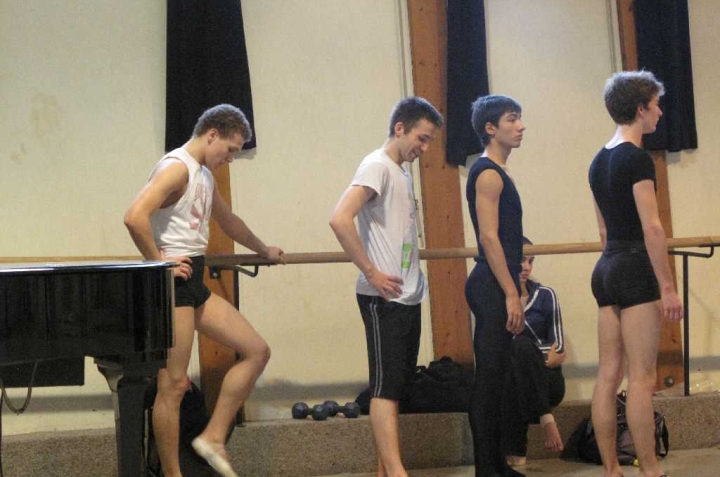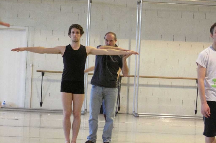 В ближайшие две недели в Лозанне пройдут спектакли Балета Бежара. Чтобы лучше понять, каким тяжелым трудом дается легкость и воздушность на сцене, предлагаем вам посмотреть несколько фотографий, сделанных на одном из уроков в школе "Рудра", созданной Бежаром в качестве учебной базы для своей труппы. Урок ведет директор школы Мишель Гаскар.