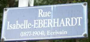 В Женеве в память об Изабель Эберхардт ее именем назвали улицу за вокзалом, в квартале Гротт (Grottes), где она родилась.