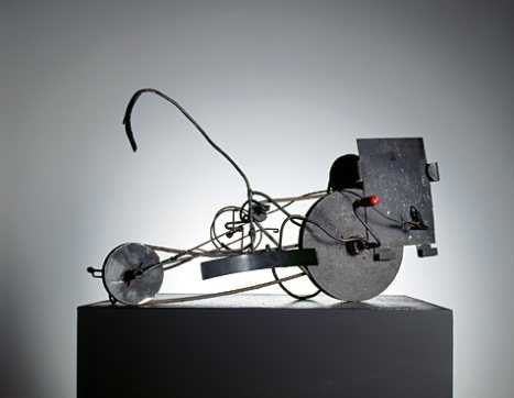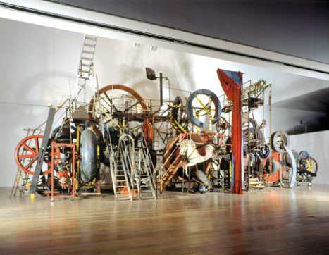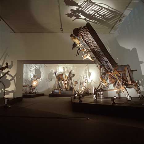 Взяла ли верх темная сторона творчества, или желание выразить в танце хрупких жестяных композиций устрашающее движение железного века? В ту эпоху Тэнгли конструирует серию агрессивных механизмов, дергающихся и производящих оглушительный скрежет, а также эксцентричных скульптур, пугающих зрителей или вызывающих у них насмешку. К таким композициям относятся и «Телеги» - группа механизмов, обреченных до бесконечности повторять одно и то же бессмысленное действие, которые становятся современной железной интерпретацией мифа о Сизифе.