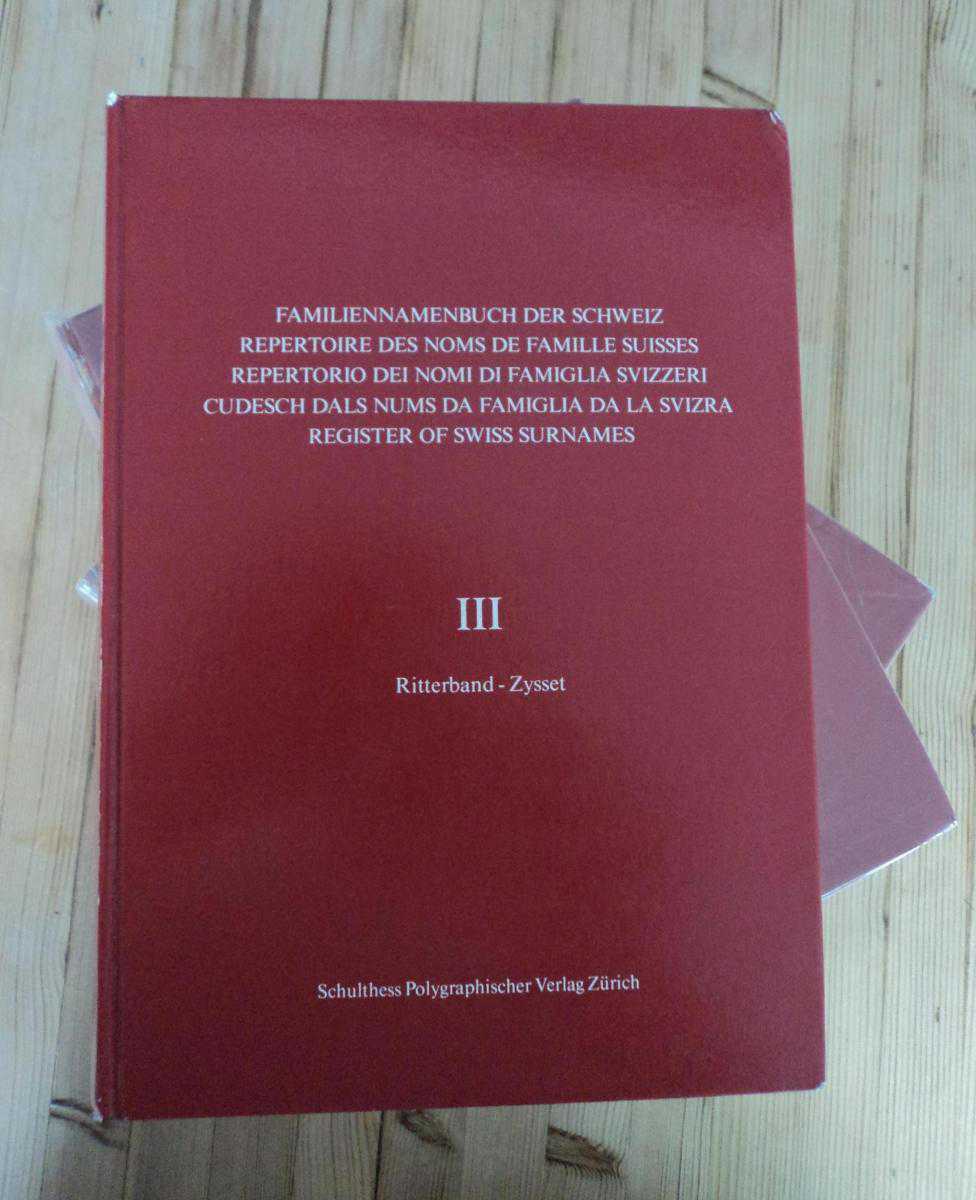 Список фамилий с указанием коммуны происхождения можно отыскать в настольной книге каждого швейцарского генеалога — трехтомнике «Répertoire des noms de famille suisses » («Перечень швейцарских фамилий».)