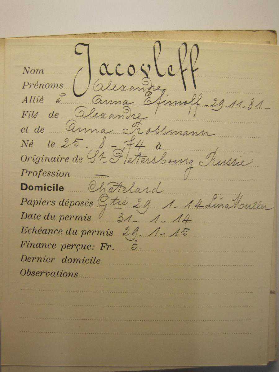 Пребывание иностранцев в той или иной коммуне также, как правило, хорошо задокументировано. Полицейские архивы во многих населенных пунктах дают подробные сведения обо всех жителях, включая иностранцев, даже заезжих на короткий срок. Старые реестры или картотеки (XIX — начало XX вв.) во многих местах переведены в публичные коммунальные или кантональные архивы и полностью открыты для исследователей.