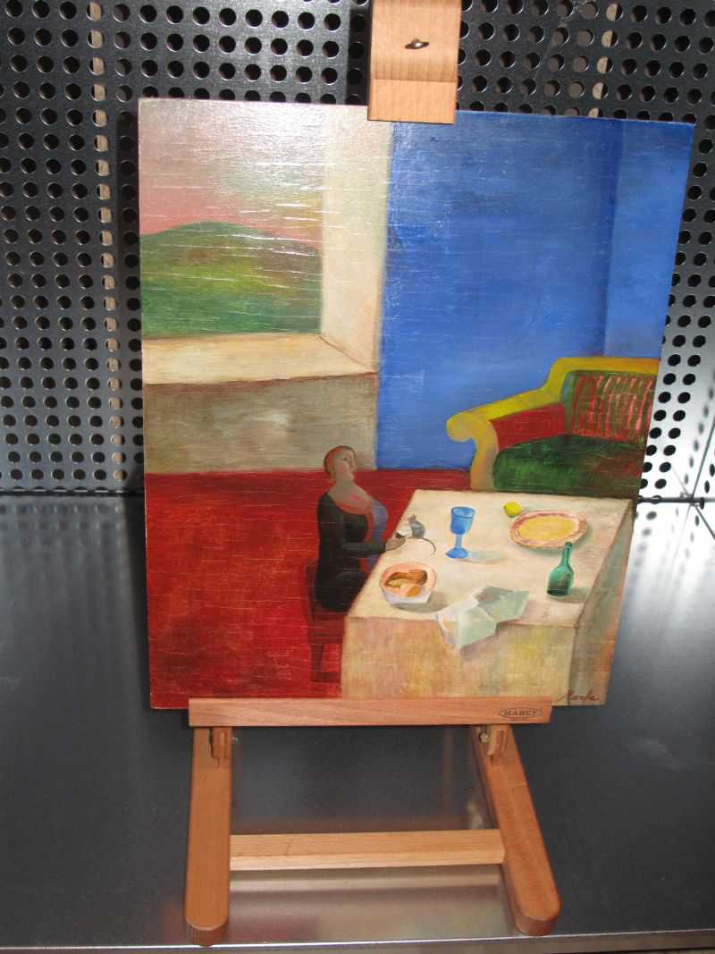 Из того, что расписанный шелковый платок неземной красоты работы Марии Львовой находится в окошке под номером 9А, мы заключили, что в день записи она не поленилась встать пораньше. Вот что рассказала Нашей Газете.ch эта женевская художница, выпускница Суриковского Института изобразительных искусств и преподаватель истории искусств в Женевском Международном Центре МГУ имени Ломоносова: «Запись, действительно, велась с 8 утра. Я приехала к 7.30 и была второй в очереди. Эта выставка очень интересна своим необычным форматом, а мне лично крайне приятно быть принятой в семью женевских художников и выставить свою работу в таком значимом месте женевской культуры».