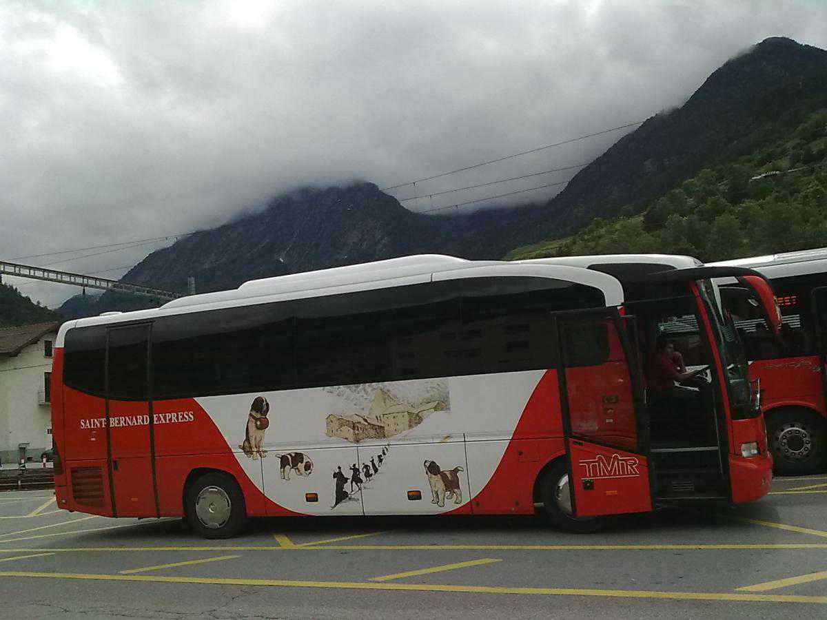 В Орсьер мы пересядем в симпатичный автобус, сплошь украшенный изображениями сенбернаров (фото автора)