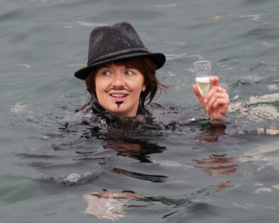 Группа «заключенных тюрьмы Шан-Доллон» в полосатых купальных штанах и с привязанными к ногам ядрами (плавающими) прихватила с собой плот с шампанским и распивала его по дороге. А компания «Боба с Ямайки» внесла экзотическую ноту – издали веселые пловцы ничем не отличались от настоящих уроженцев тропических стран. Правда, когда они вылезли, стало заметно, что коричневая краска течет, а черные кудрявые парики нужно выжимать.