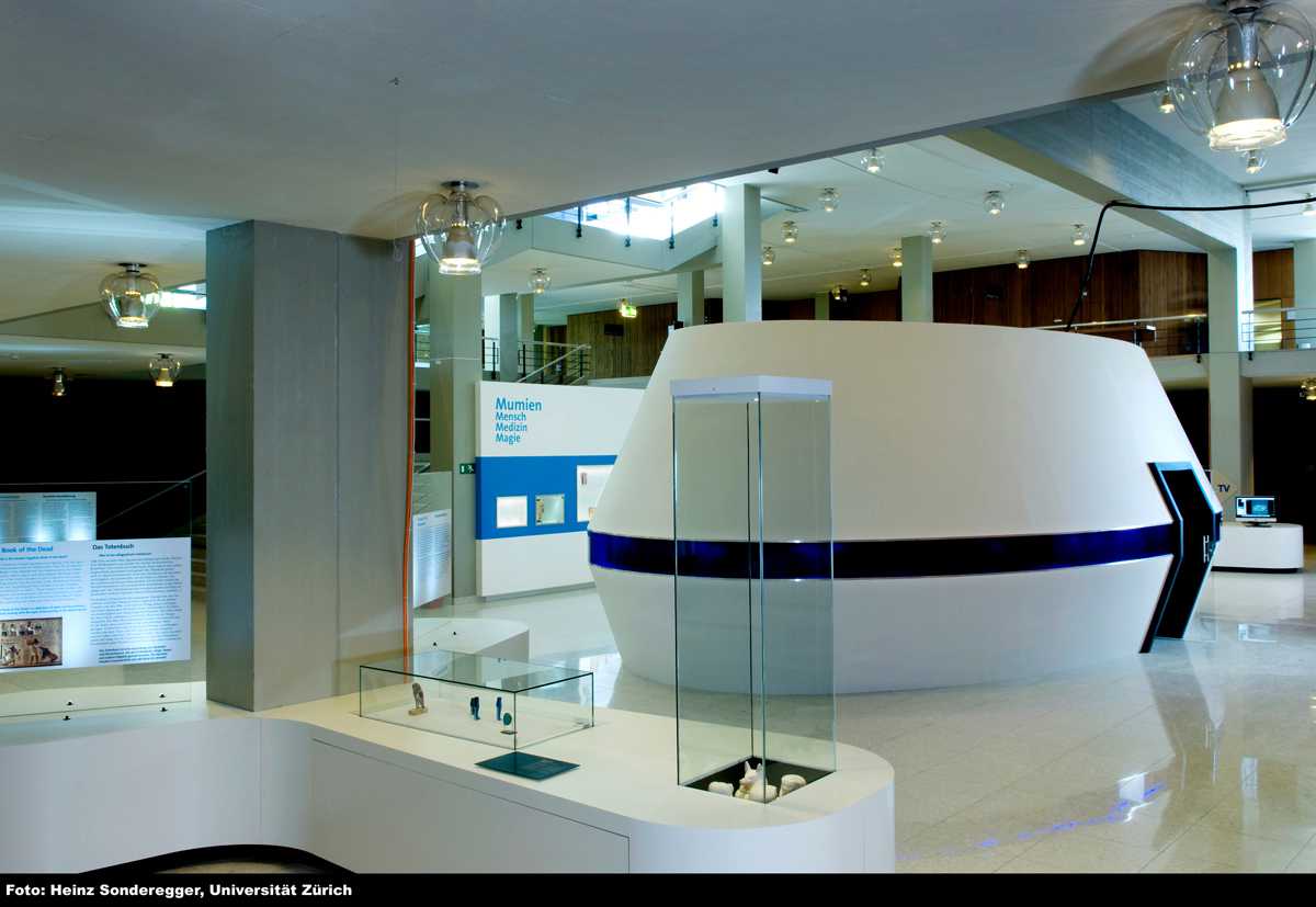 Центр эволюционной медицины был открыт в Цюрихе в 2010 году и занимается, в частности, исследованием мумифицированных тканей, которые могут многое рассказать об эволюции человеческого организма и современных болезнях. Сразу оговоримся: речь пойдет не о бальзамированных фараонах и пустых гробницах, а о медицинских и научных аспектах мумификации. Для этого посетителям вначале предлагают отвлечься от популярного в Голливуде образа и прояснить, что означает «мумия» в действительности.