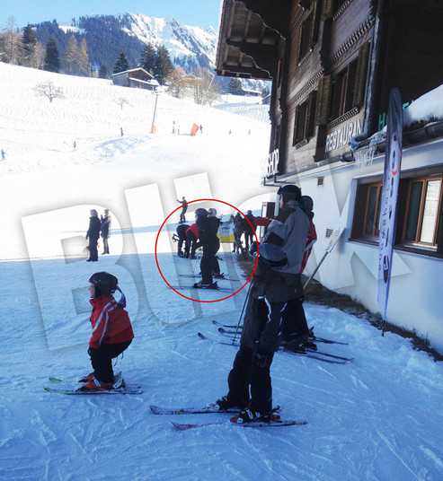 Blick: В красном кружке - Мадонна, "впервые вставшая на лыжи"