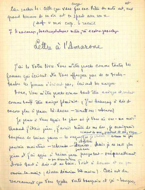Как автор «Письма к Амазонке» переходит с одного на другой берег полов, находя приют в мужчине, потому что "женское Я" не может дать ей ребенка, так и Цветаева-писатель переходит с одного на другой берег этого странного речевого потока, ее потока, в котором сливаются воды французского и русского, словно один язык – приток другого. Странное стечение и отстояние языков. И особенно в тетради, в красной ученической тетради, в клеточку, толстой, которую она заполняет с двух концов, которую пересыпает языковыми вкраплениями  - эта тетрадь  таит в себе  тайну кузницы слов. Кузница слов Марины Цветаевой – это подземная кузница, где царит этот женский Вулкан, не боящийся никакого пекла, никаких сплавов.