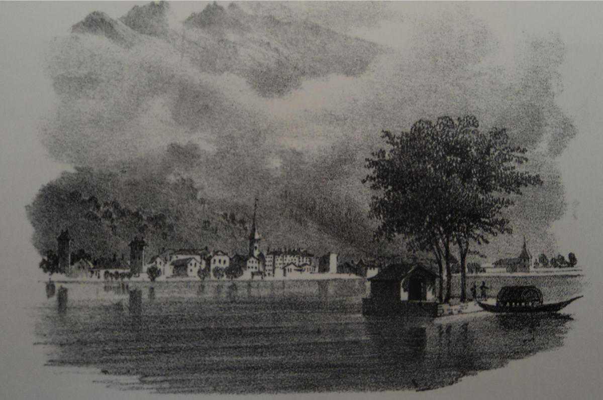 И тут начинаются мифы. Видимо для того, чтобы не обделять такое красивое место романтической легендой, в середине XIX века, на подъеме в Швейцарии туризма, и прежде всего туризма британского, рождаются замысловатые истории, почему-то связанные именно с Туманным Альбионом. Вдруг оказывается, что остров был якобы насыпан, а дерево посажено некоей безутешной английской девицей, жених которой утонул во время купания, и тело утопленника нашли именно на месте острова Пе… Дальше - больше: вскоре после этого случая Федеральный совет Швейцарии якобы подарил