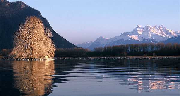Это необычное место расположено в восточной оконечности Женевского озера, на границе территориальных вод Швейцарии, на cтыке коммун Вильнев и Новиль. Все, кто путешествовал по озеру или вдоль его берегов в этих краях, видели возвышающиеся над водами ветви огромного дерева. Дерево это растет на клочке земли под названием остров Пе (Peilz) — территории кантонального подчинения кантона Во.