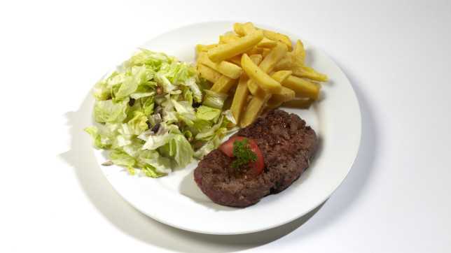 3769 баллов: котлета с картофелем-фри и салатом оказалась гораздо более экологичной, чем мясное рагу (Bafu/Aura)