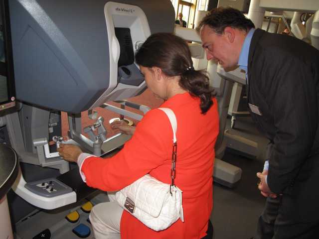 «вплотную» - внимательно рассмотреть, потрогать и даже сыграть с ним в интерактивную игру – предоставила жителям Женевы, интересующимся медицинскими новинками, частная клиника Clinique Générale Beaulieu. Ведь именно здесь, как напомнил нам ее директор Филипп Кассгрен, был использован этот первый в Швейцарии хирургический робот – еще в 2003 году. Немедленным последствием этого события стало создание также первого в Швейцарии Романдского центра лапороскопической и роботизированной хирургии (CLR). В 2007 году клиника приобрела более усовершенствованную модель робота, Vinci S ®, отличающуюся четырьмя интегрированными «руками», а в 2011-м – на работу сюда "поступил" робот самого последнего поколения, Si HD.