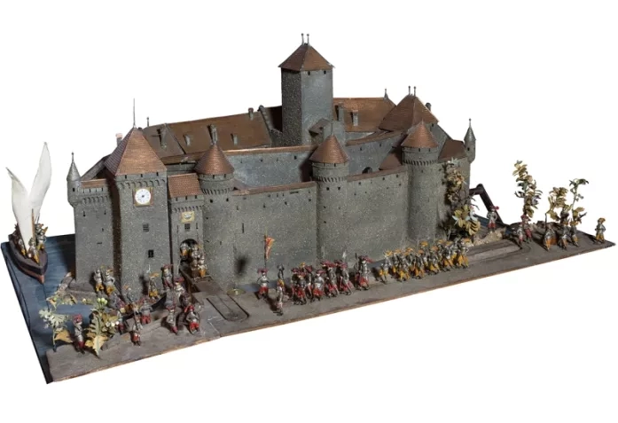 Публика любовалась автоматом еще в далеком 1849 году на площади Beaulieu в Лозанне, а также в Ивердон-ле-Бене, как раз во время проведения кантональной водуазской выставки. С «содержанием» макета перекликается хранящееся в замке полотно – репродукция большой картины, которую написал Эдуар Ош в 1883 году. На ней изображен прикованный к колонне страдалец Бонивар.
