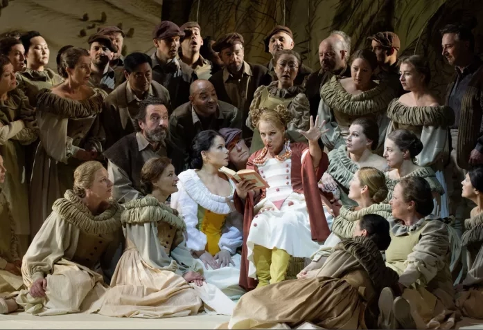 Сцена из спектакля "Любовный напиток" в Опере Цюриха. Адина - Ольга Кульчинская (© Judith Schlosser)