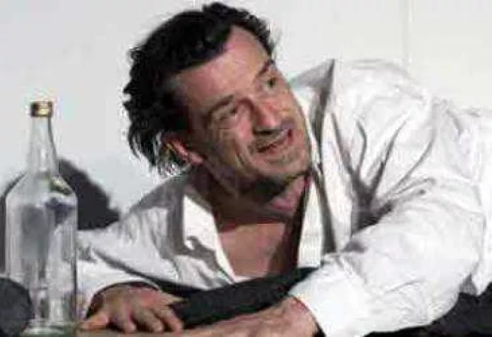 Первые десять-пятнадцать минут спектакля хотелось выкрикнуть: не верю! Томас отрабатывал на совесть, потел, дрожал, заламывал руки, временами напоминая то Раскольникова в горячке, то пьяного эсесовца в бункере перед капитуляцией, то наркомана с Лангештрассе, кого угодно, только не лирического героя Ерофеева. А потом, постепенно, наладилось, голос приобрел нужные интонации, мимика, жесты – все стало узнаваемо. И зал втянулся, ожил, начал отзываться смешками. Не смехом – хотя текст Ерофеева временами очень смешной – а именно смешками. Смех раздался только когда Веничка, походя, полусловом поминает Кальвина. По-русски, кстати, в этом месте не особо смешно. Ну так и постановка рассчитана не на русскую публику. Нужно смириться с мыслью, что наш Венедикт Ерофеев – всемирное достояние, как Толстой и Достоевский.
