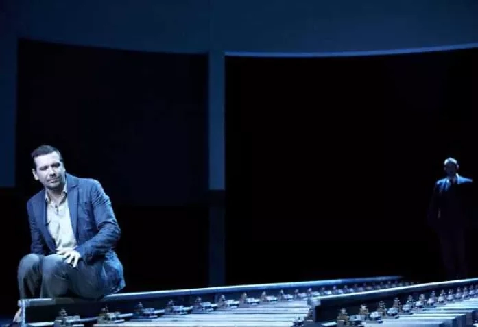 Этот момент очень талантливо и мощно придуман режиссёром и художником. Когда многотонная конструкция ( а именно такое ощущение возникает от фрагмента железной дороги), во второй части спектакля вместе со шпалами, бесшумно и в нужном ритме опускается на сценическую площадку, - это потрясает и восхищает.