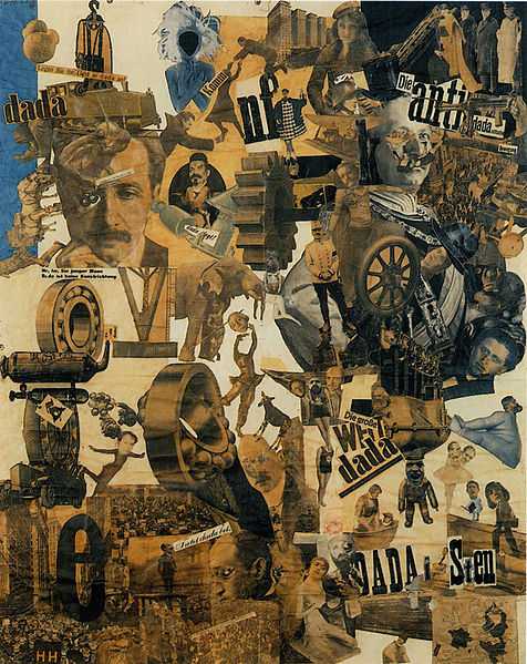 Но дадаисты не только писали манифесты, они творили. Одним из самых излюбленных видов искусства стал для них коллаж, который создавался случайным образом: на холст высыпался набор нарезанной бумаги в форме различных прямоугольных фигур. Как они легли, так их и приклеивали. Мастером этого жанра был Ханс Арп. Аналогичным способом писались стихи. Поэт вытаскивал случайным образом из нарезки газетных заголовков слова и складывал их в предложения. Техника коллажа получила свое развитие среди немецких дадаистов в Берлине и Кёльне. Среди представителей направления в Германии есть имена, чьи более поздние работы приобретут мировую известность: Георг Гросс, Ханна Хёх, Курт Швиттерс, Макс Эрнст. Последний считал, что коллаж – это «систематическая эксплуатация случайного или искусственно спровоцированного соединения двух или более чужеродных реальностей в явно неподходящей для них среде, и искра поэзии вспыхивает при приближении этих реальностей». Коллаж всегда носил протестный и бунтарский характер, давал возможность выразить в нетекстовой, но при этом очень яркой и образной форме то, что запрещала цензура. Сами художники называли себя «фотомонтажниками» и использовали в своих работах не только вырезки из газет, но и собственные фотографии, и элементы живописи.