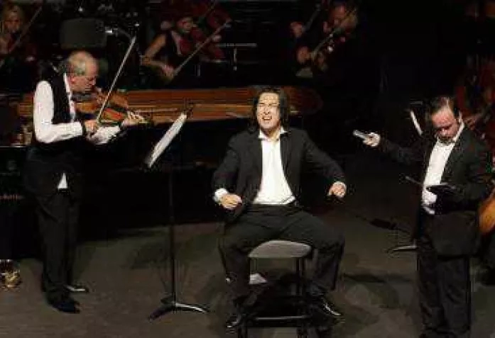На сцене Женевской оперы будут властвовать три солиста: не нуждающийся в представлении всемирно известный скрипач Гидон Кремер и всемирно известные в определенных кругах скрипач Алексей Игудесман и пианист Ричард Хьюнг-ки Джоо, в представлении нуждающиеся, и, конечно, созданный Кремером камерный ансамбль Кремерата Балтика.