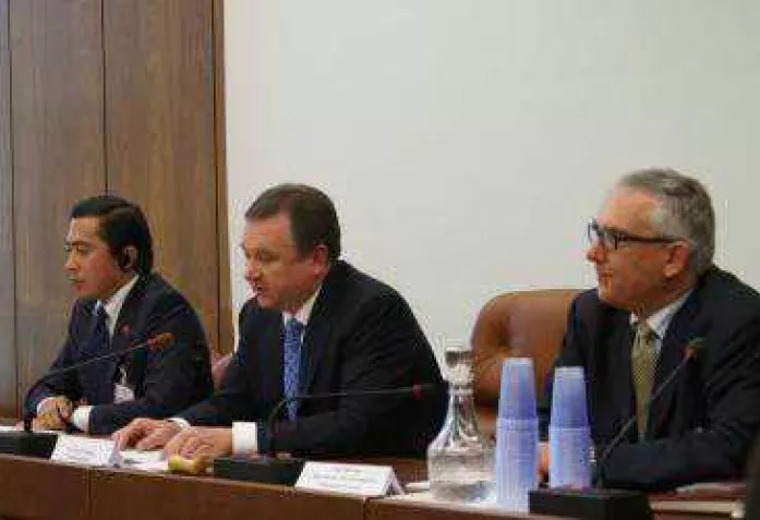 Премьер-министр Киргизии Игорь Чудинов (в центре) говорит о потенциале своей страны. (НГ)