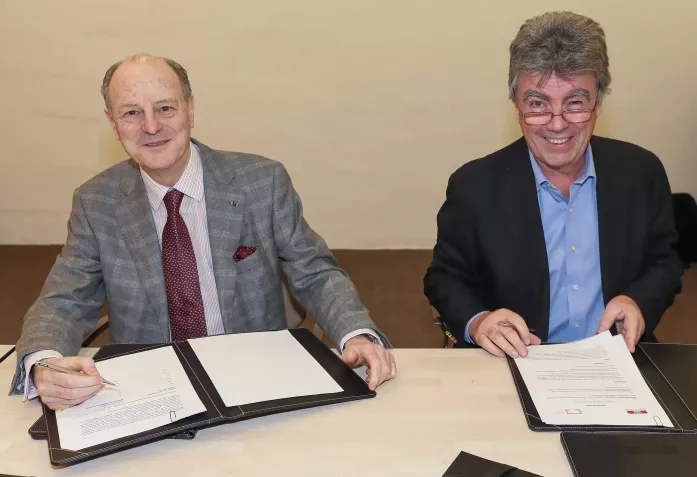 Жан Клод Гандур и Патрик Эбишер на церемонии подписания договора (© Alain Herzog/EPFL)